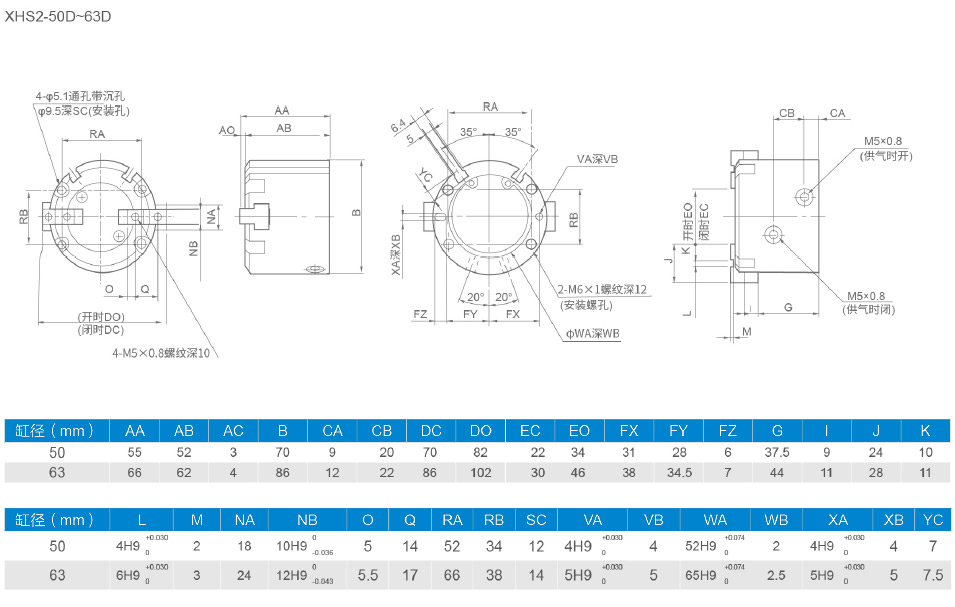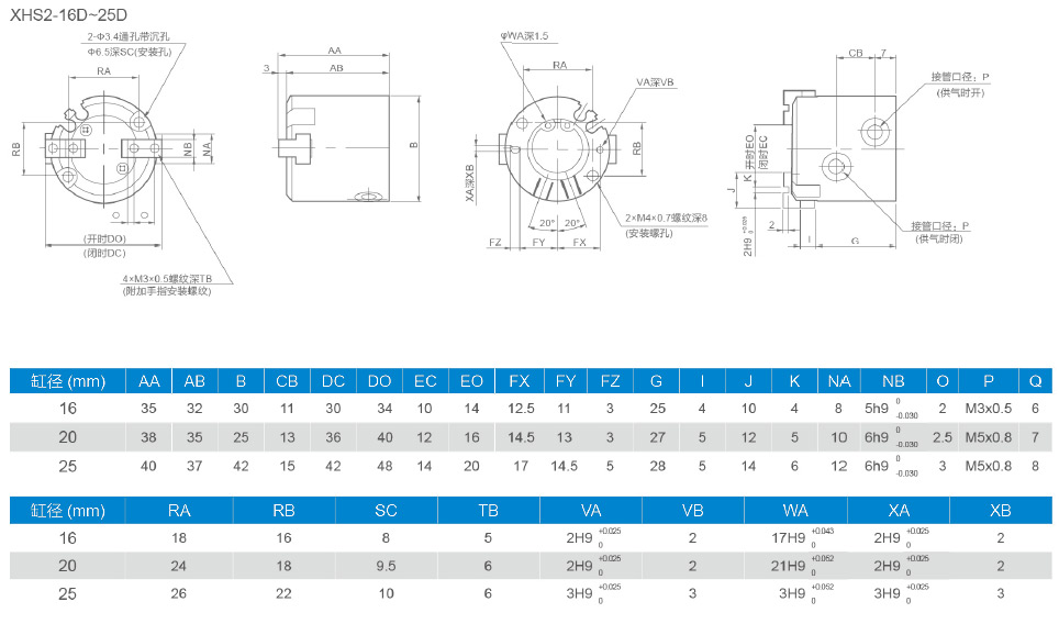 XHS2平行開閉型氣動(dòng)手指(圓柱形)