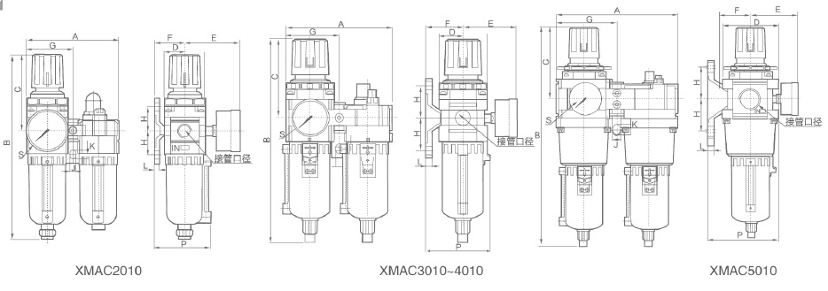 | 接管口徑(G) | 1/8" | 1/4" | 1/4" | 3/8" | 3/8" | 1/2" | 3/4" | 3/4" | 1" | |